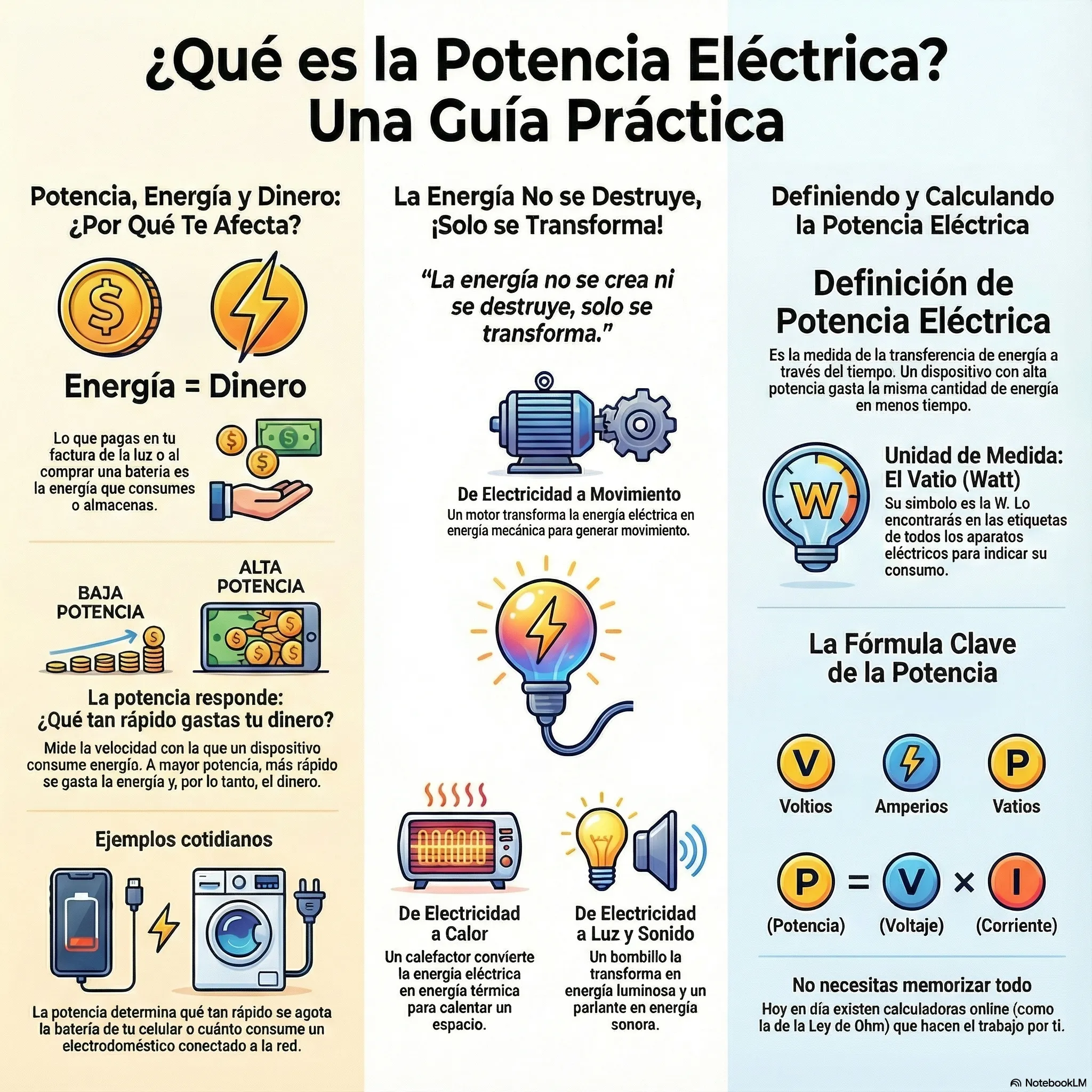 Para entender la potencia, debemos recordar que la energía no se crea ni se destruye, solo se transforma. La potencia mide qué tan rápido ocurre esa transformación.