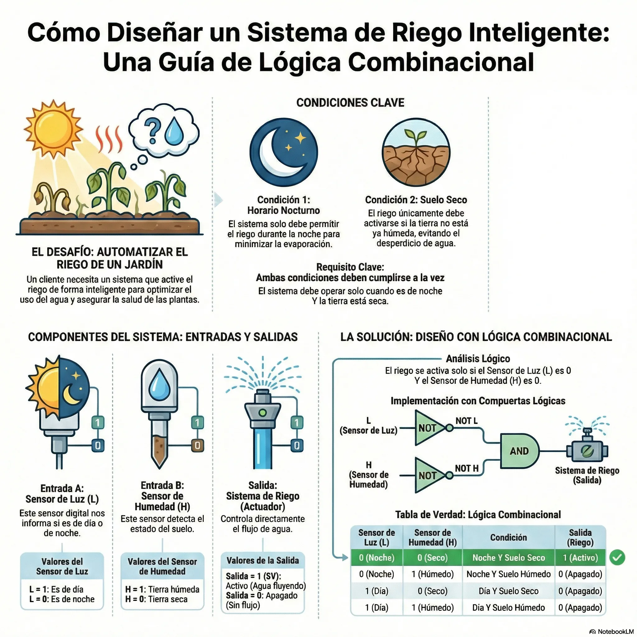 Este módulo explora la transición del mundo analógico de señales continuas al sistema digital de estados binarios, fundamentando cómo las máquinas procesan información mediante cambios discretos y muestreo. Asimismo, analiza componentes clave como el relé para el aislamiento de potencia y el uso de transistores para implementar físicamente las compuertas lógicas AND y OR.