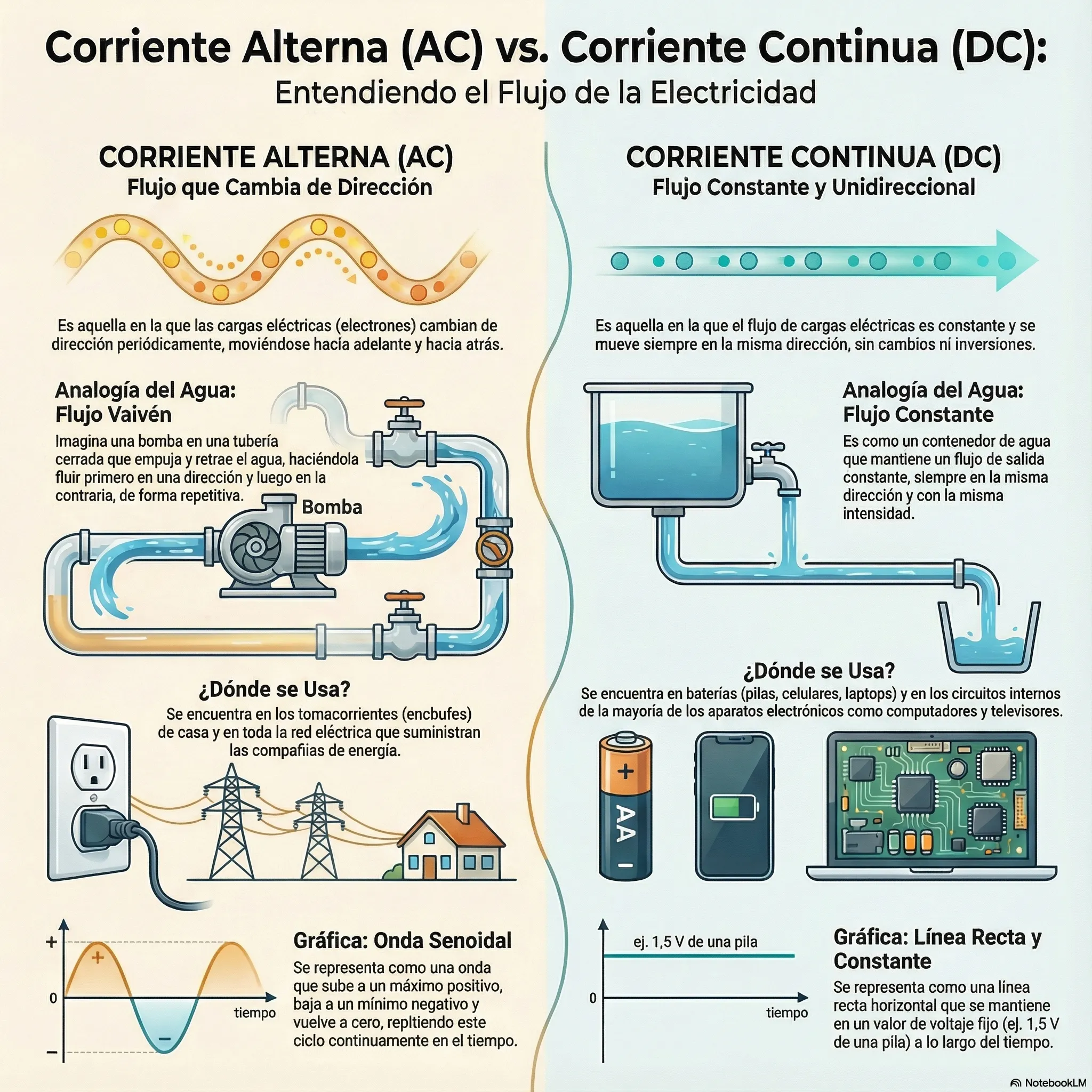 Bienvenidos a esta sesión donde exploraremos los dos tipos fundamentales de corrientes eléctricas. Comprender la diferencia entre ambas es esencial para cualquier estudiante de electrónica, ya que define cómo funcionan nuestros dispositivos y cómo se distribuye la energía en el mundo.