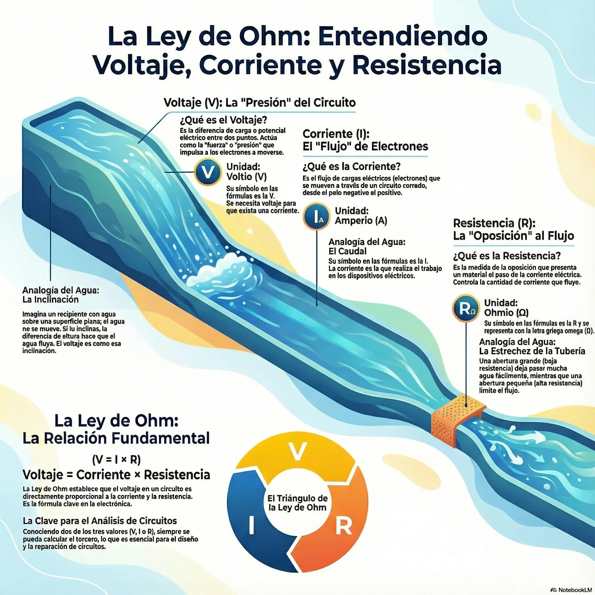 Para comprender cualquier circuito electrónico, es esencial dominar tres conceptos básicos: